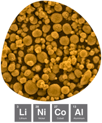 The high aluminium share enables lower resistance than NCM CAMs and makes it ideal for Maximum Power applications.
